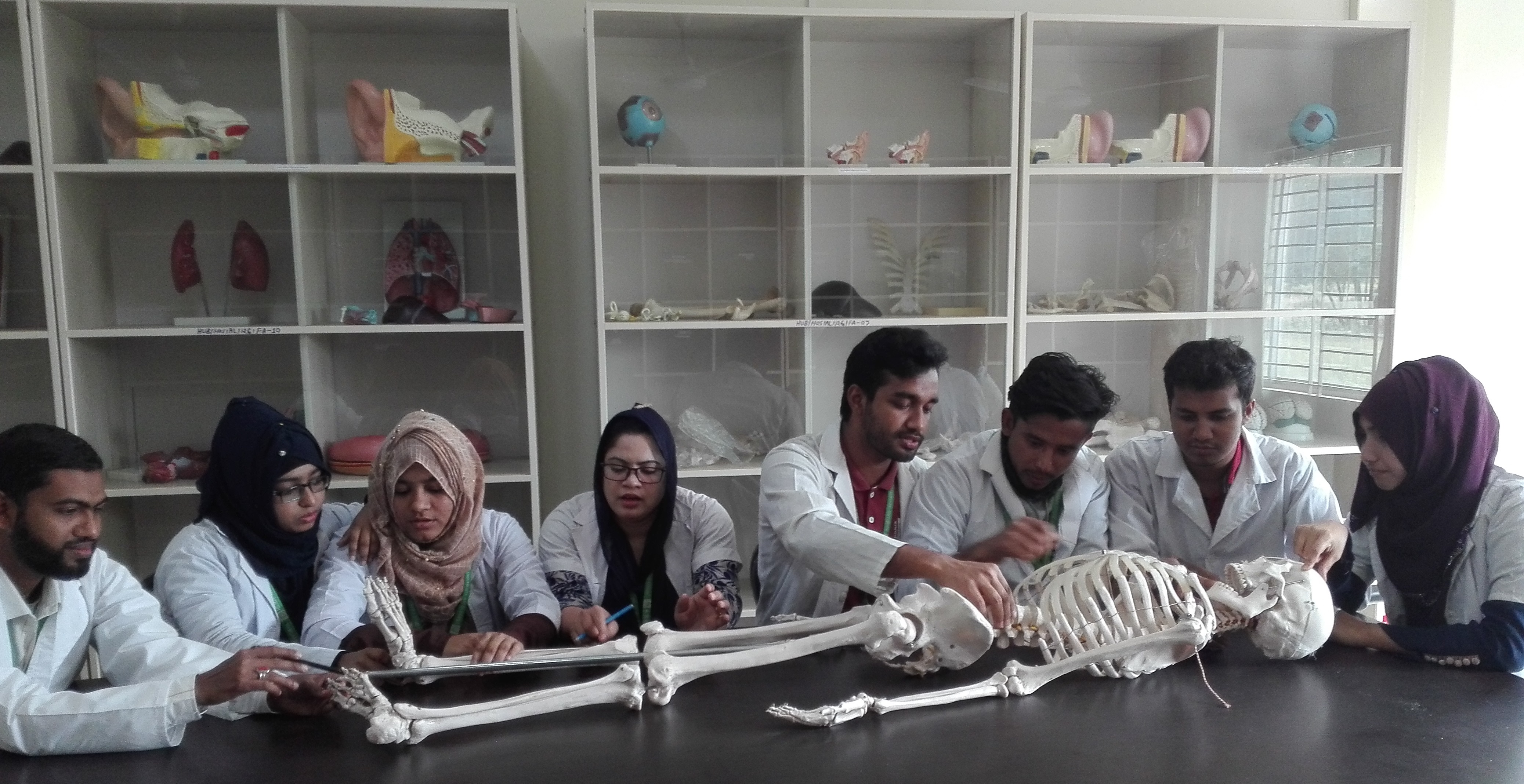 Anatomy deals with the study of structures of body. Human anatomy exposes the structures of the body and pursues their related disposition by dissections. Hamdard University Bangladesh, faculty of Unani and Ayurvedic medicine has a well developed anatomy lab. The lab is well decorated and full of anatomical instruments. Students can gain their practical knowledge about human body by using this anatomy lab. At the end of the Anatomy course, the students should be able to mention, identify, show, draw and describe the structural components of the body responsible for carrying out normal body functions; use the above knowledge to understand, correlate and appreciate the other preclinical, para-clinical and clinical medical subjects; apply the knowledge of Anatomy with the knowledge of other medical subjects to provide optimum health services in the country and abroad.