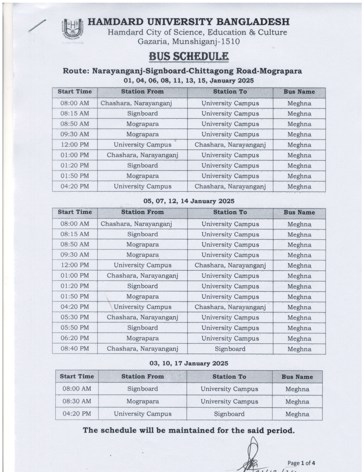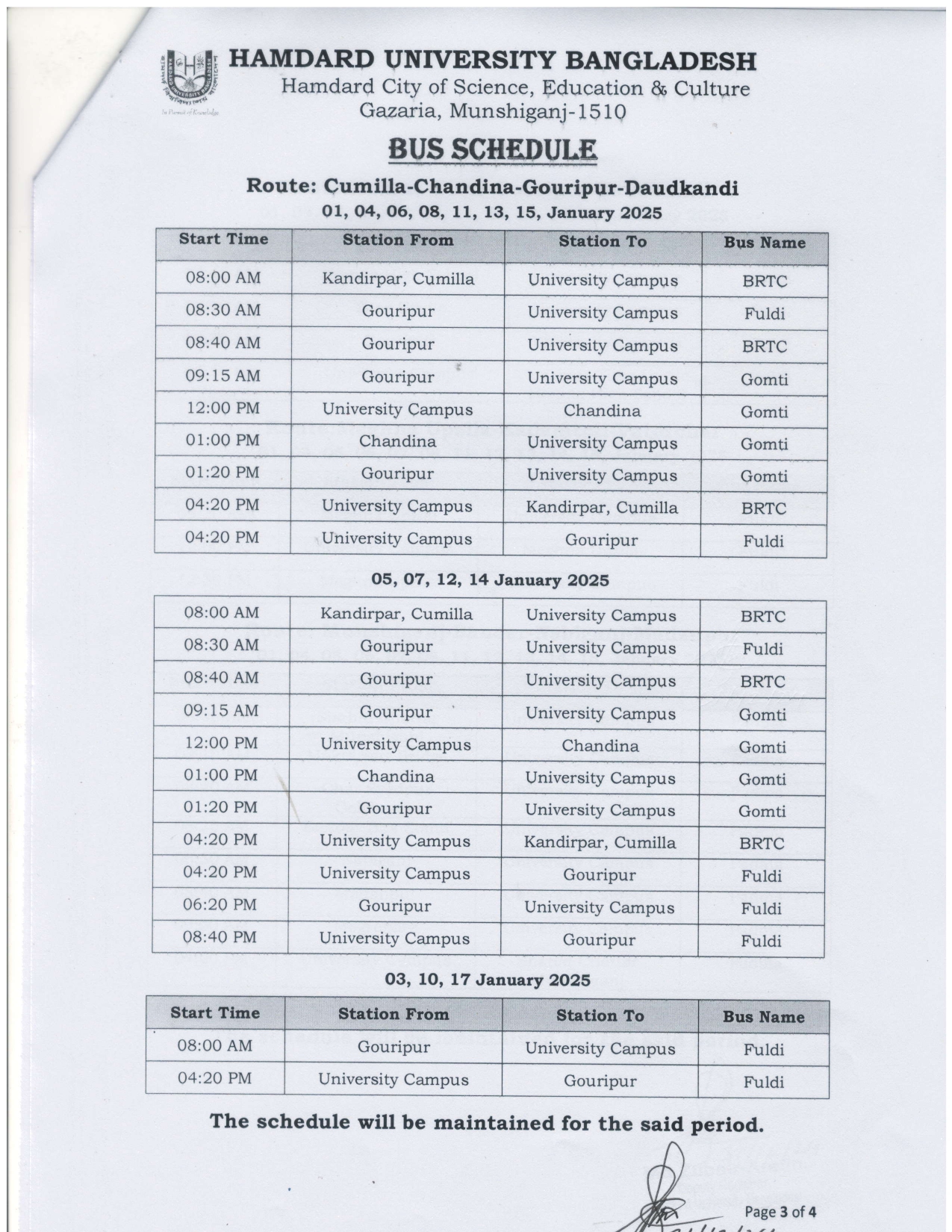 Bus Schedule: Exam Time